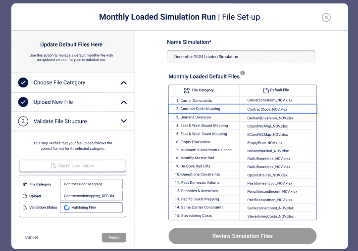 The most critical workflow was running monthly simulations - a process that could involve uploading up to 16 different files, each with its own update schedule.