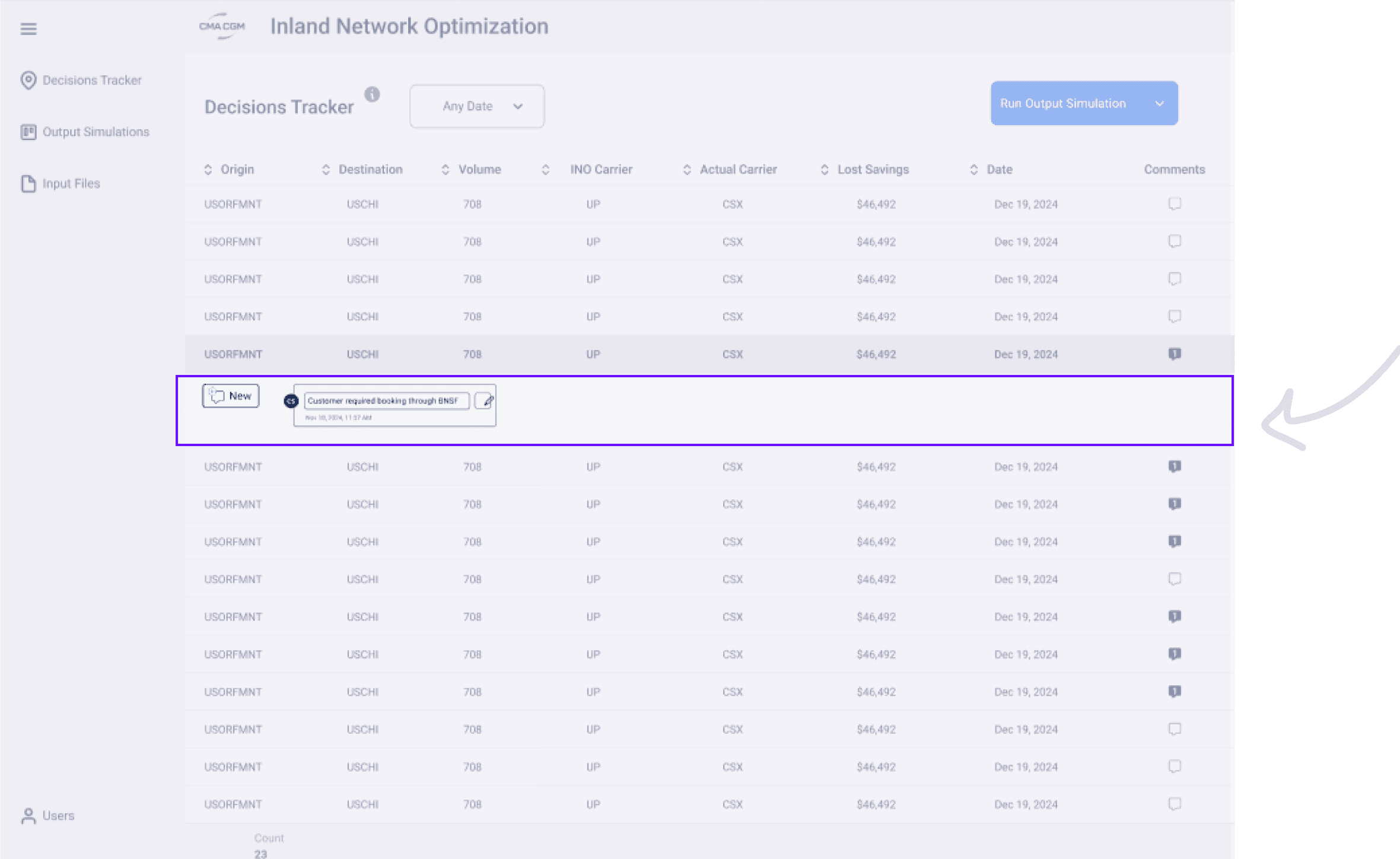 Together, we landed on a simpler solution: comments that expand directly below each row. Users could still access feedback without disrupting the layout, and we avoided the visual clutter and technical complications of competing navigation systems.